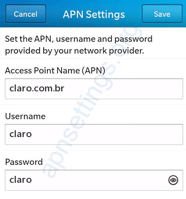 Configurações de APN Claro no Blackberry