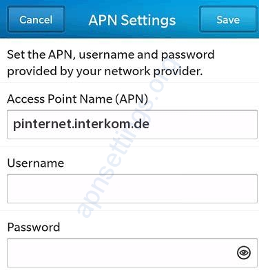 (APN) Zugriffspunktname: pinternet.interkom.de