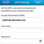 Phonero Norge 4G 3G Internett MMS oppsett på Blackberry Keyone, Passport, PRIV, KEY2, Evolve, EvolveX, Motion, Aurora.