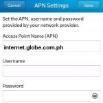 Globe Philippines 4G LTE 3G Internet and MMS Settings for Blackberry KEY2 Evolve EvolveX Motion Key One Z10 Q10 Curve Bold 9220 8520